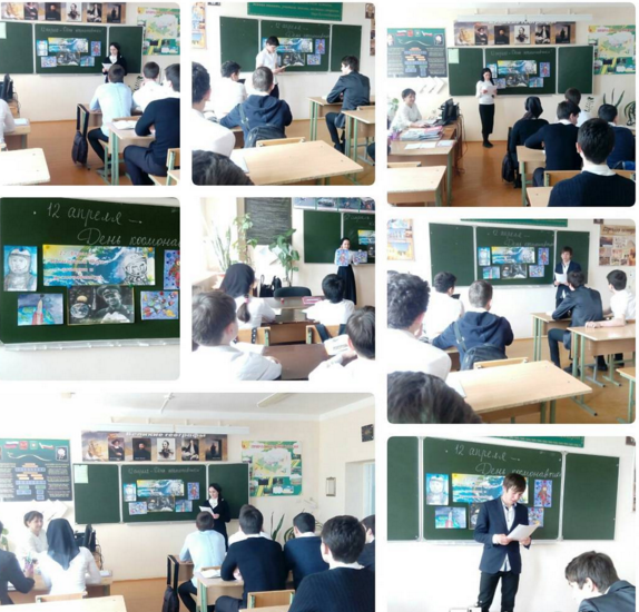 12.04.2016Классные руководители 1-4 классов провели конкурс рисунков «Каким я вижу космос». Среди учащихся 5-8 классов был проведён конкурс творческих работ «Создай ребус о космосе». Ученики 10 класса предоставили к показу мультимедийные презентации «Покорители космоса». Все победители конкурсов были награждены грамотами. В 1-2 классах прошёл классный час «Заочное космическое путешествие вокруг Солнца». Учащиеся узнали о солнечной системе, о покорении человеком космоса, о первом летчике – космонавте Ю. А. Гагарине.В 3-4 классах классный руководитель провёл классный час на тему «День космонавтики – 50 лет». Учащиеся поговорили о дне космонавтики, о первом космонавте, женщинах - космонавтах, об Алексее Леонове и его первом выходе в открытый космос. В 5-6 классах прошёл классный час «Уроки Гагарина». Обучающиеся познакомились с биографией первого космонавта, узнали много интересного о подготовке к космическому полету.В 7-8 классах проведён классный час «Современные достижения в космонавтике». Вниманию учащихся была предоставлена информация о роли космоса в современном мире, о достижениях в области космонавтики, о будущем развитии космоса.На классном часе «Дорога в космос» девятиклассники просмотрели мультимедийную презентацию, в которой отражены документальные кадры освоения космоса.