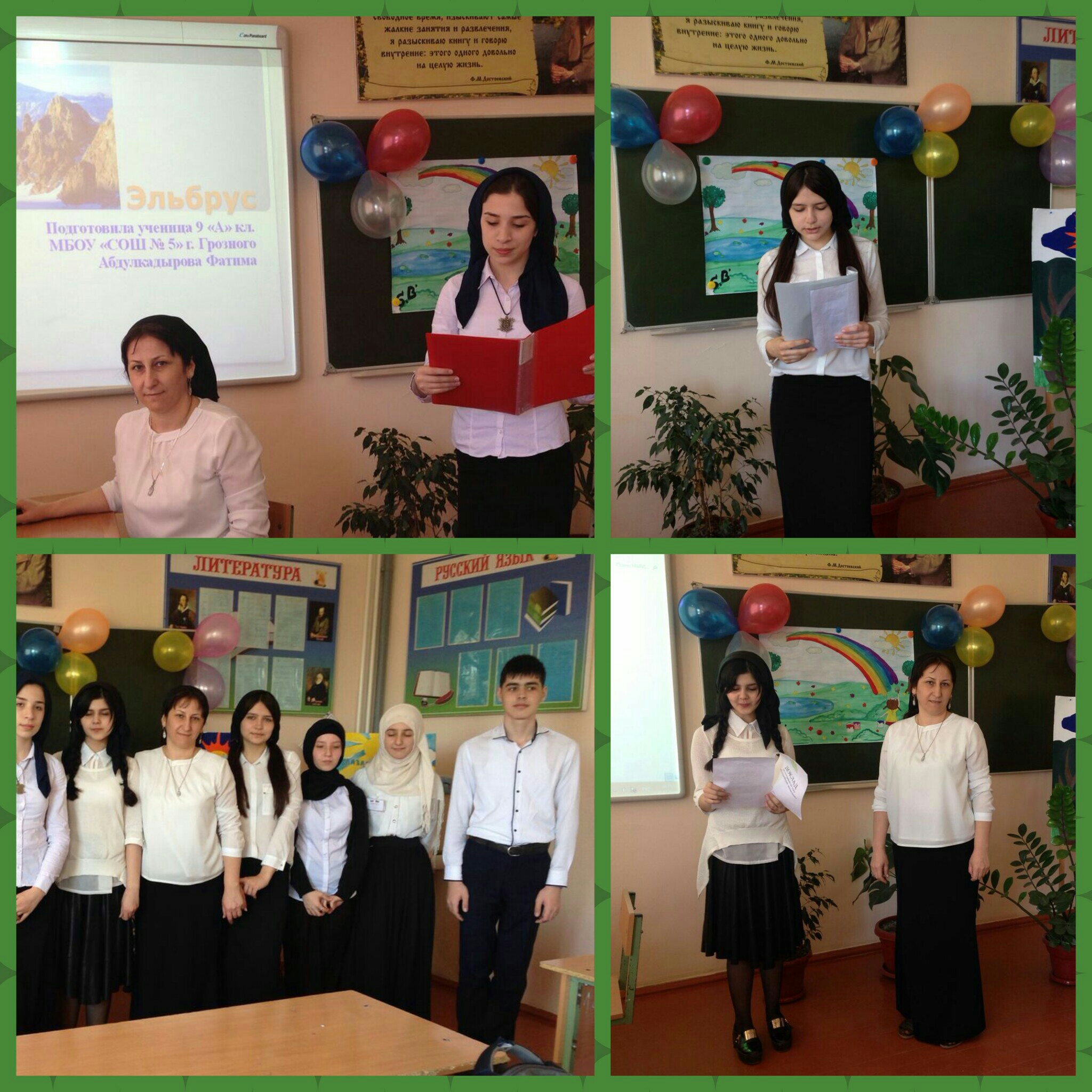 18.04.2016В целях изучения, распространения и внедрения инновационного педагогического опыта, учителем географии Лабазановой.М.Х., было проведено внеклассное мероприятие по географии состязательного характера, конкурс - "творческих проектов" в виде презентаций, среди учащихся 8-9 кл. Цель проведённого внеклассного мероприятия - это развитие познавательной и творческой активности учащихся. 1. Бахаева Эвелина, 9 б кл, Кезеной Ам; 2. Оздамирова Раяна, 8а кл, Байкал; 3. Хадуева Хава, 9 а кл, Уссурийский заповедник; 4. Музаева Айша, 8а кл, Кунгурская пещера; 5. Абдулкадырова Фатима, 9а кл, Эльбрус; 6. Умаров Лема, 8б кл, Былинное озеро Ильмень; 7. Мазаева Тоита, 9б, Карелия; 8. Хасуева Милана, 8б кл, Красноярские столбы.