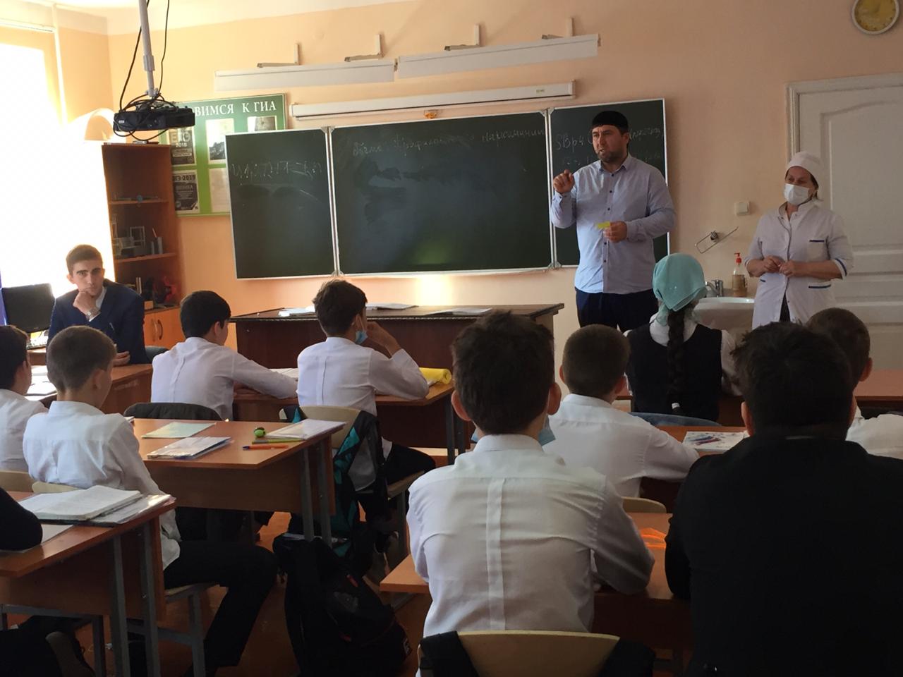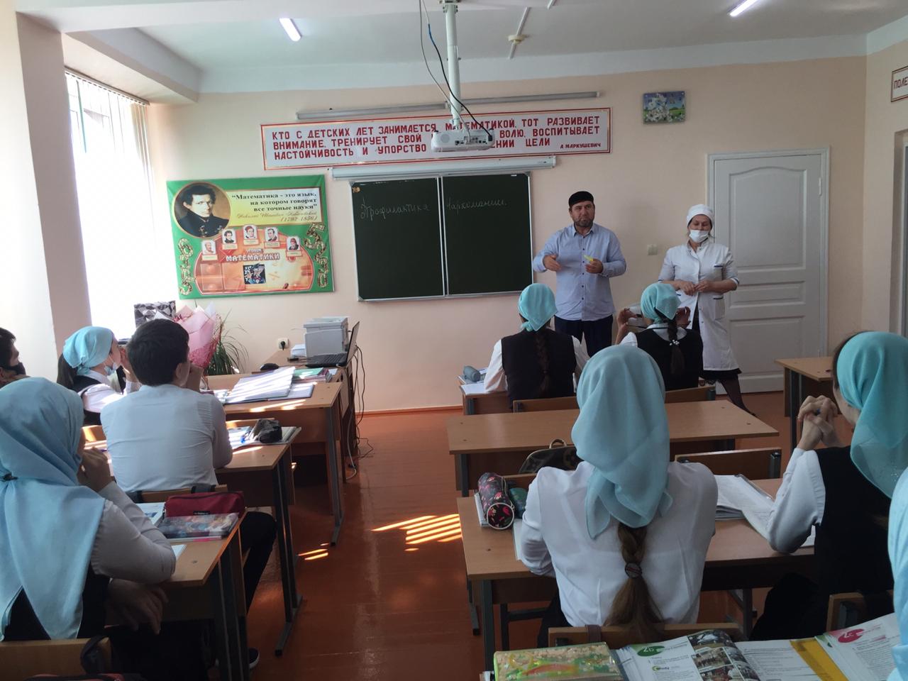 Беседы проводили педагог-организатор по ДНВ Абуев Ислам и мед.сестра школы Новразова Асмарт.
