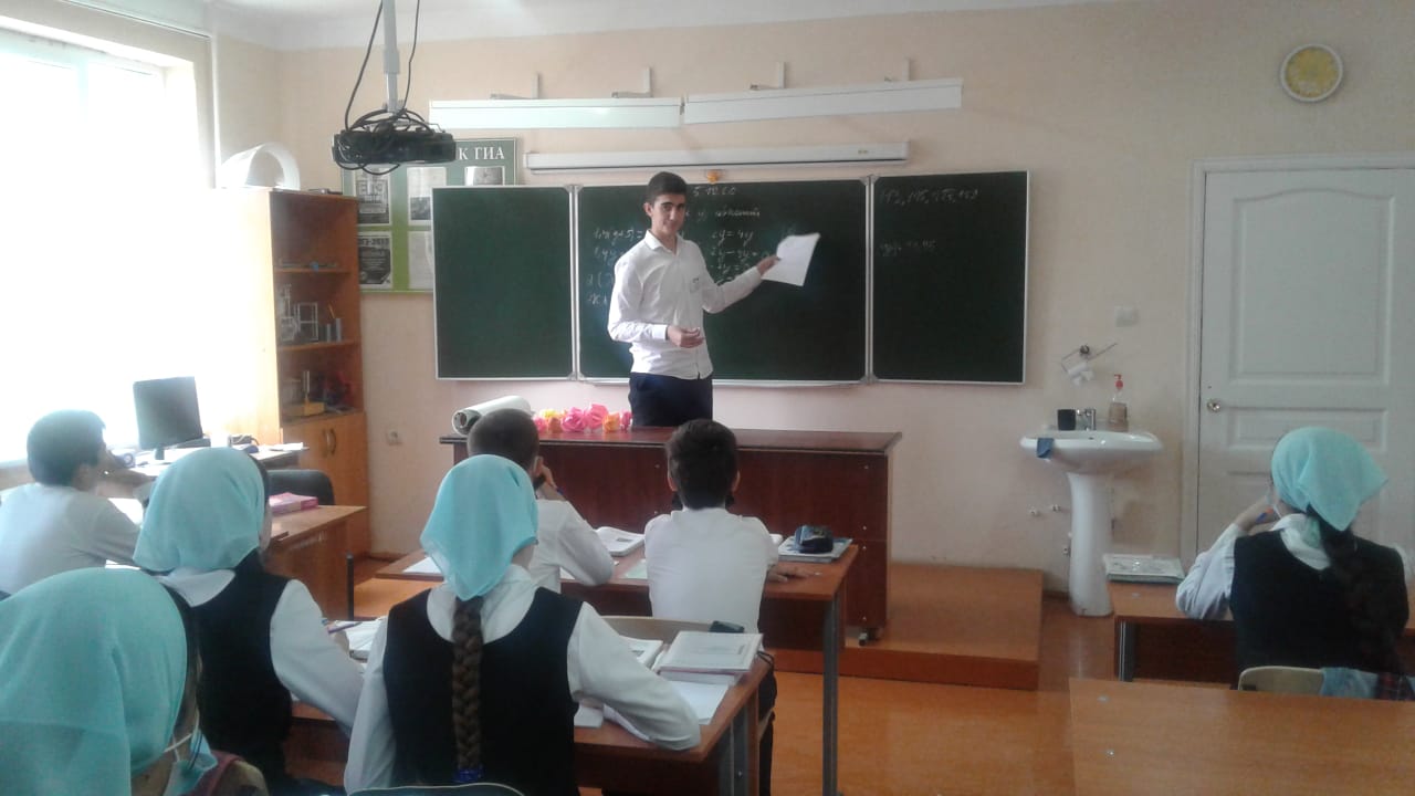Ученики 11 класса и активисты ШУС "Радуга" подготовились к урокам, совместно с учителями и провели уроки: биологии-Мазаева Раяна;русского языка- Малаева Марет;математики-Мальсагов Адам;Сахабова Медина;чеченского языка- Гайтукаева Милана.