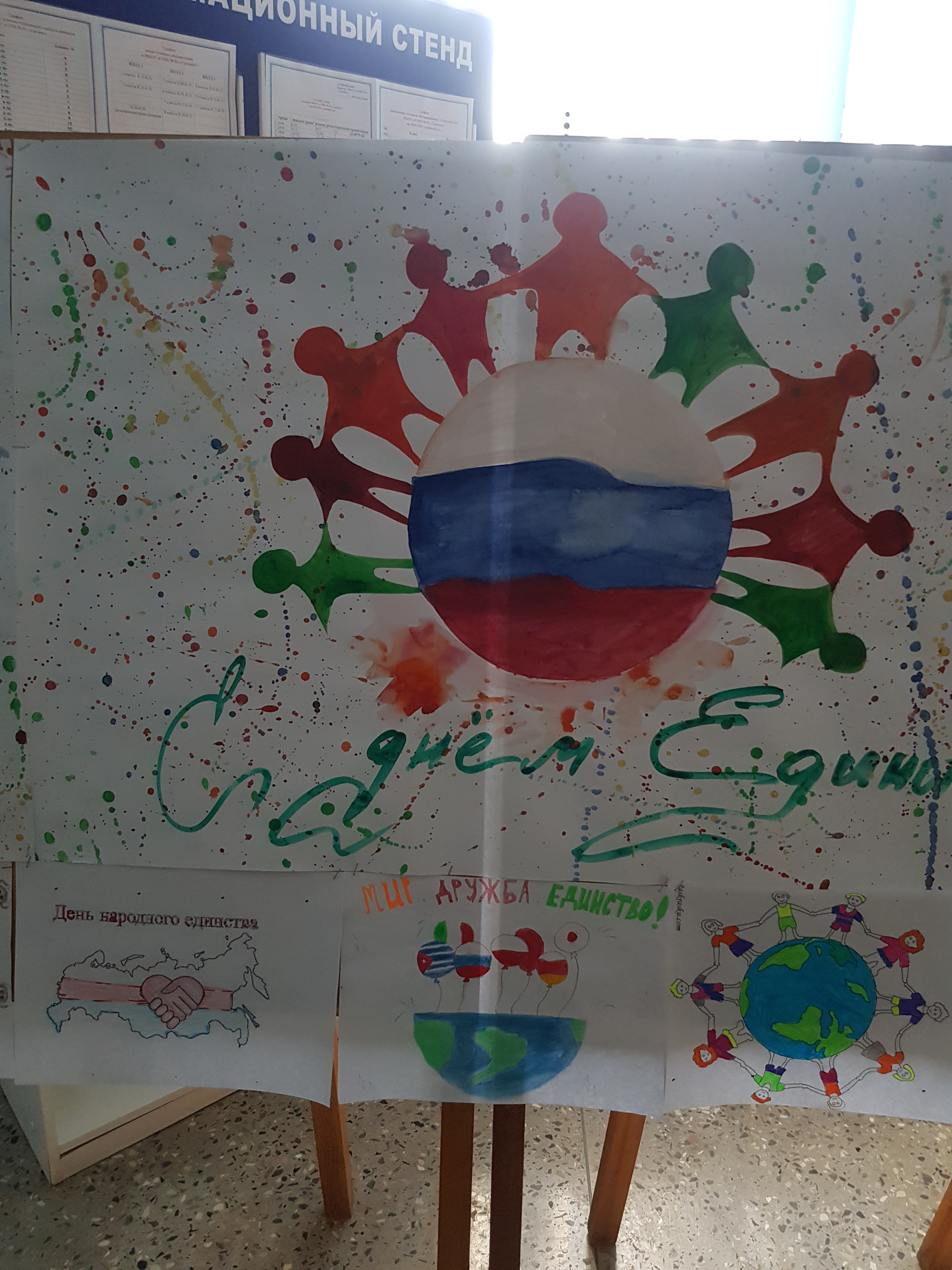 Ученики МБОУ "СОШ №5 им. З.А. Кадырова" приняли участие в выставке рисунков, посвещенных Дню народного единства (4 ноября).