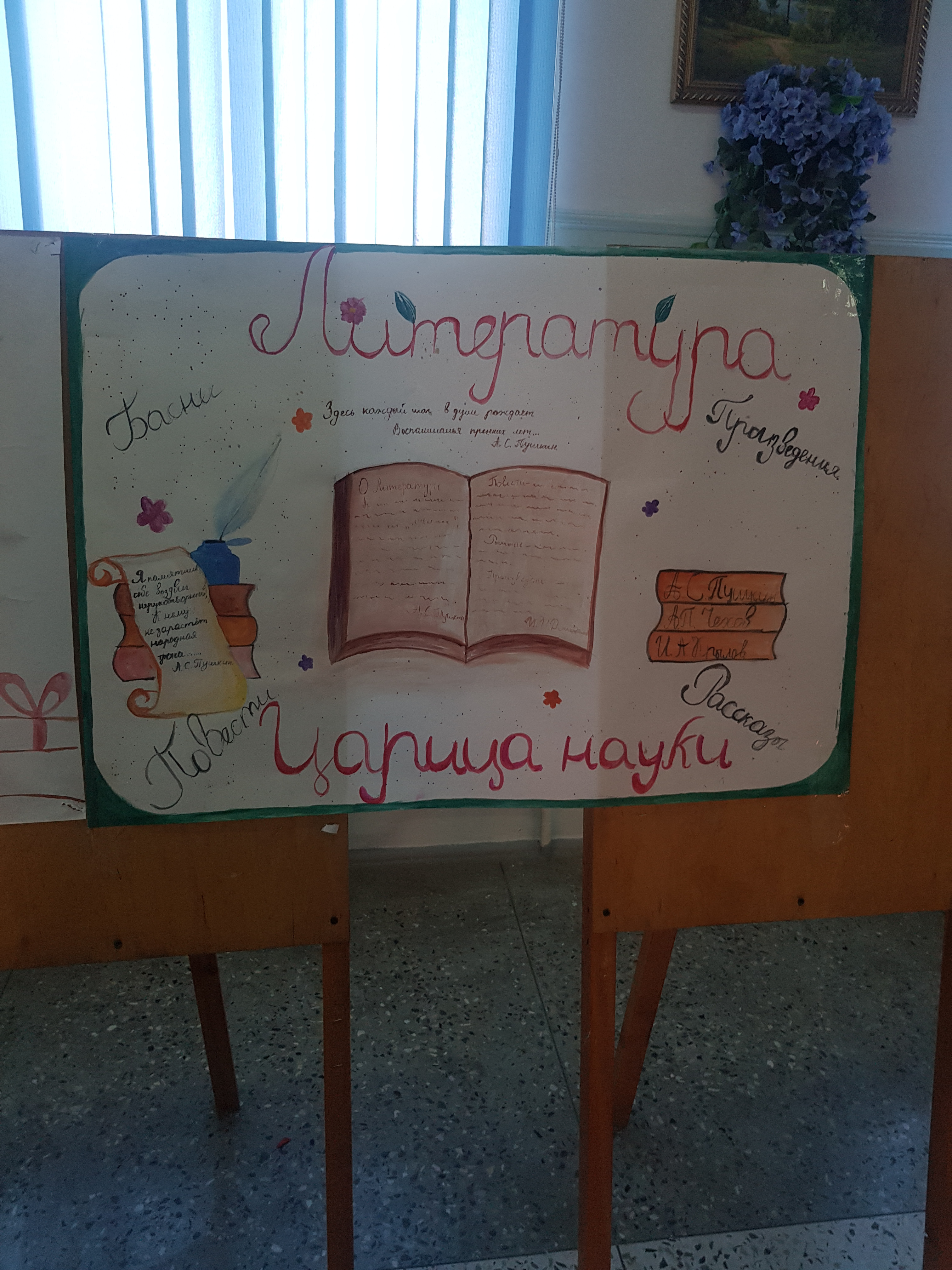 Ученики МБОУ "СОШ №5 им. З.А. Кадырова" подготовили рисунки и стенгазеты приуроченные недели русского языка и литературы.