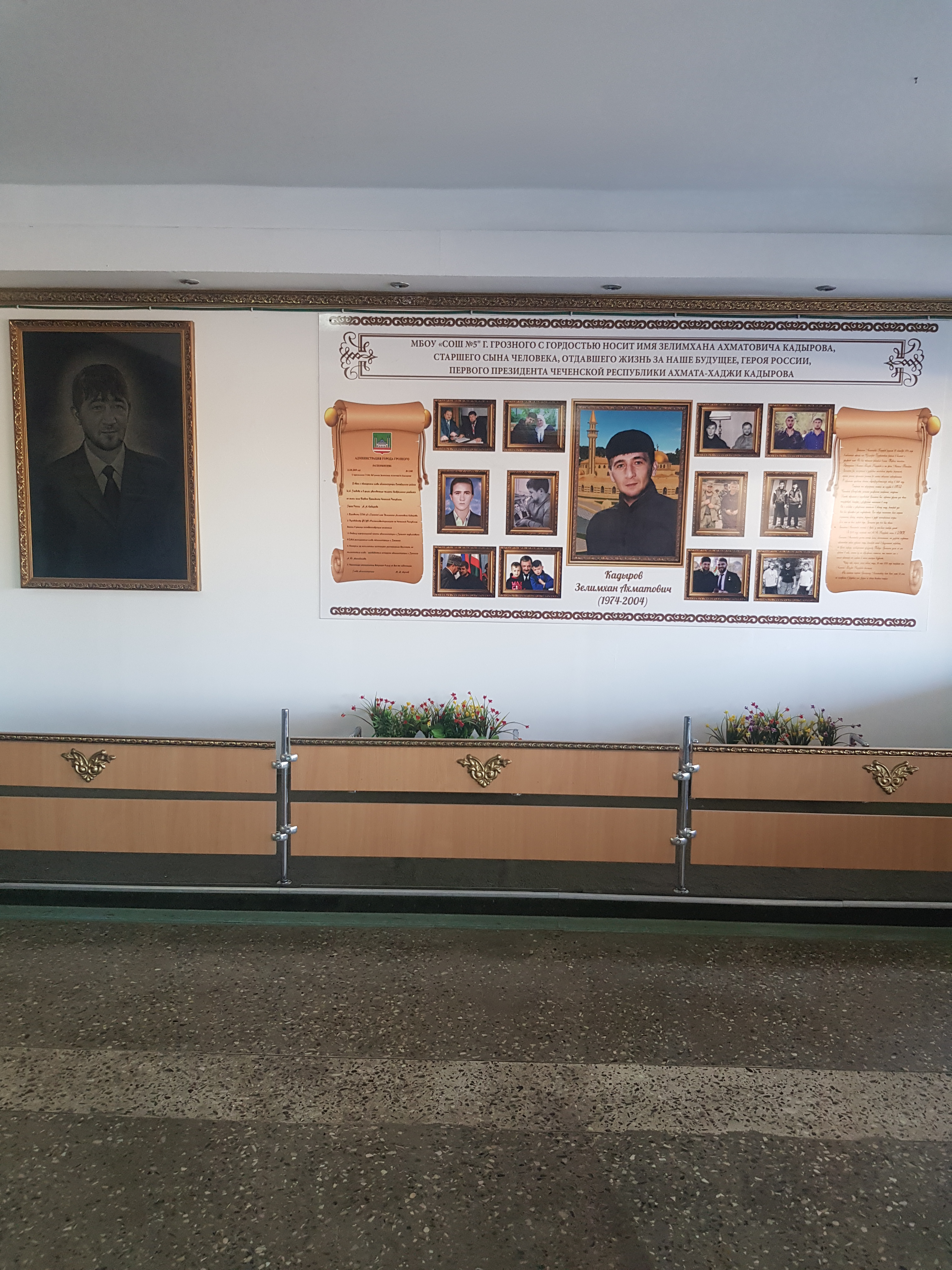 Уголок в МБОУ "СОШ №5 им. З.А. Кадырова" памяти З.А. Кадырова