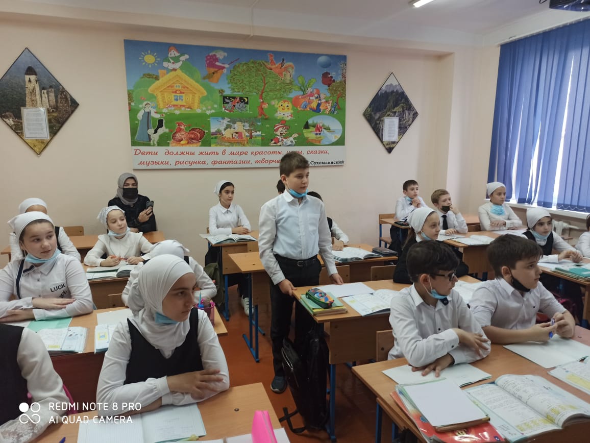 В МБОУ"СОШ №5 им. З.А. Кадырова", был подготовлен и проведен открытый урок по математике в 4"А" классе. Открытый урок был приурочен Предметной недели.