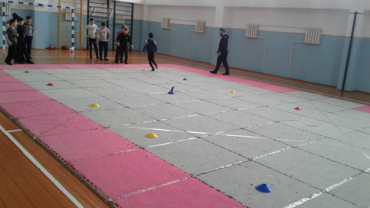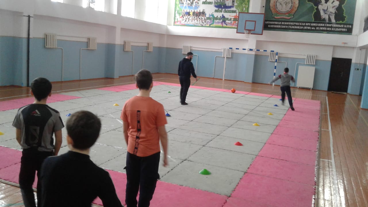 С 15.03.21г в МБОУ 'СОШ 5 им. З. А. Кадырова", началась Неделя физической культуры. Учитель:Эдильгириев А.М. проводит урок в "6б" классе "Футбольные элементы"
