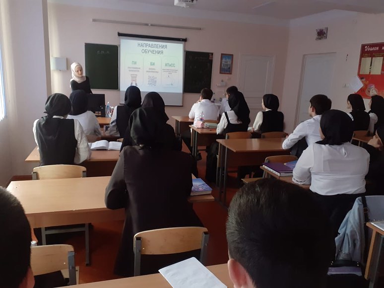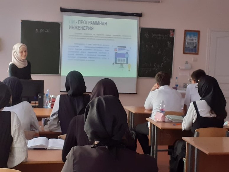 13.04.2021В МБОУ "СОШ №5 имени З.А. Кадырова" с профориентационной беседой посетили представители ЧГУ ФИТ: преподаватель дисциплины "Разработкак Web"-Кудусова Марха Исаевна и студент 1 курса факультета "Бизнес информатика"-Дабуев Тамерлан. Беседа была проведена в 10-11 классах. Обучающиеся с интересом слушали информацию о будущей профессии и задавали интерисующие их вопросы.