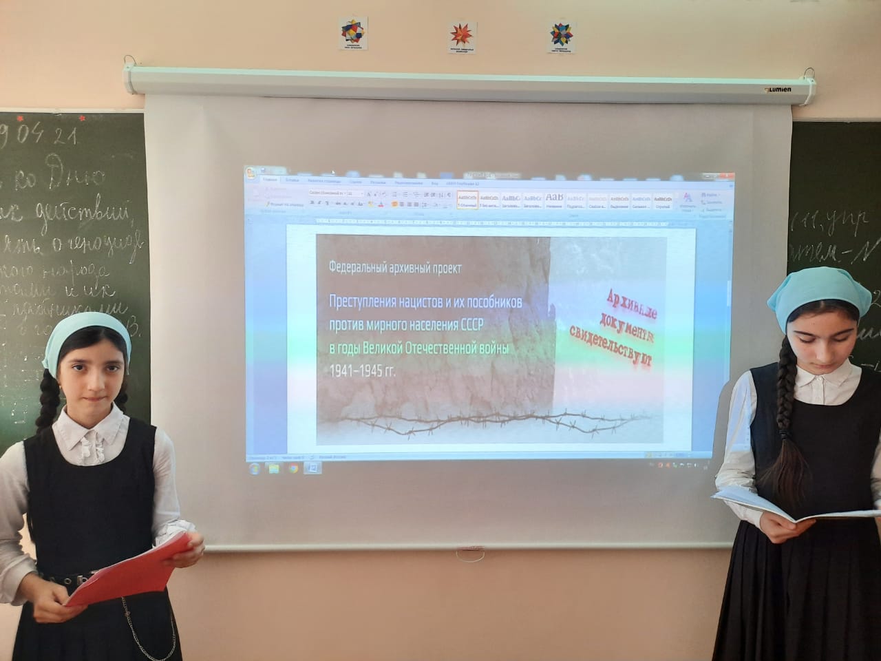 19.04.202119 апреля 2021г. обучающиеся 5-11классов МБОУ "СОШ 5 им. З. А. Кадырова" присоединились ко Дню единых действий, в память о геноциде советского народа нацистами и их пособниками в годы Великой Отечественной войны.