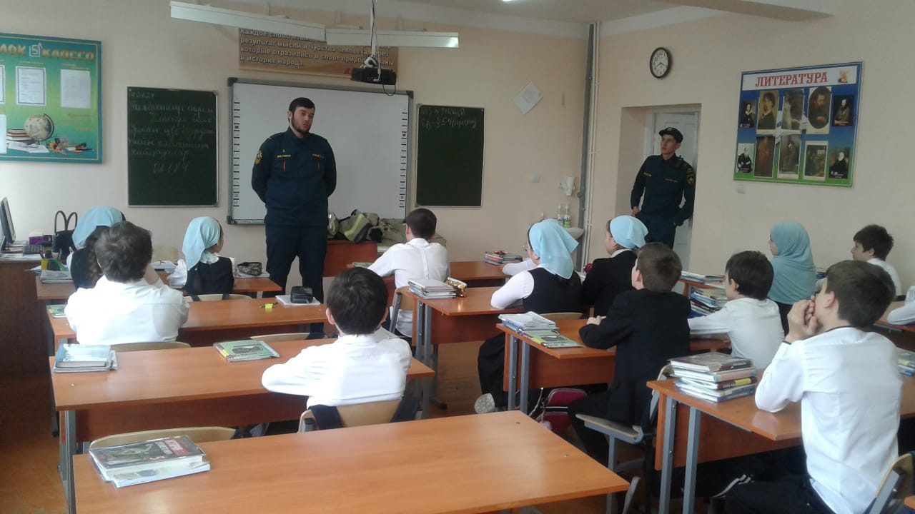19апреля 2021г.в МБОУ "СОШ 5 им. З. А. Кадырова" сотрудниками ПСЧ-3 Кантаевым Саид-Магомедом, ЗПСЧ-4 начальником караула лейтенантом Асхабовым А.А. был проведен урок "Безопасность на водоемах во время летних каникул" так же Асхабов А.А. рассказал о работе пожарников и их снаряжениях.