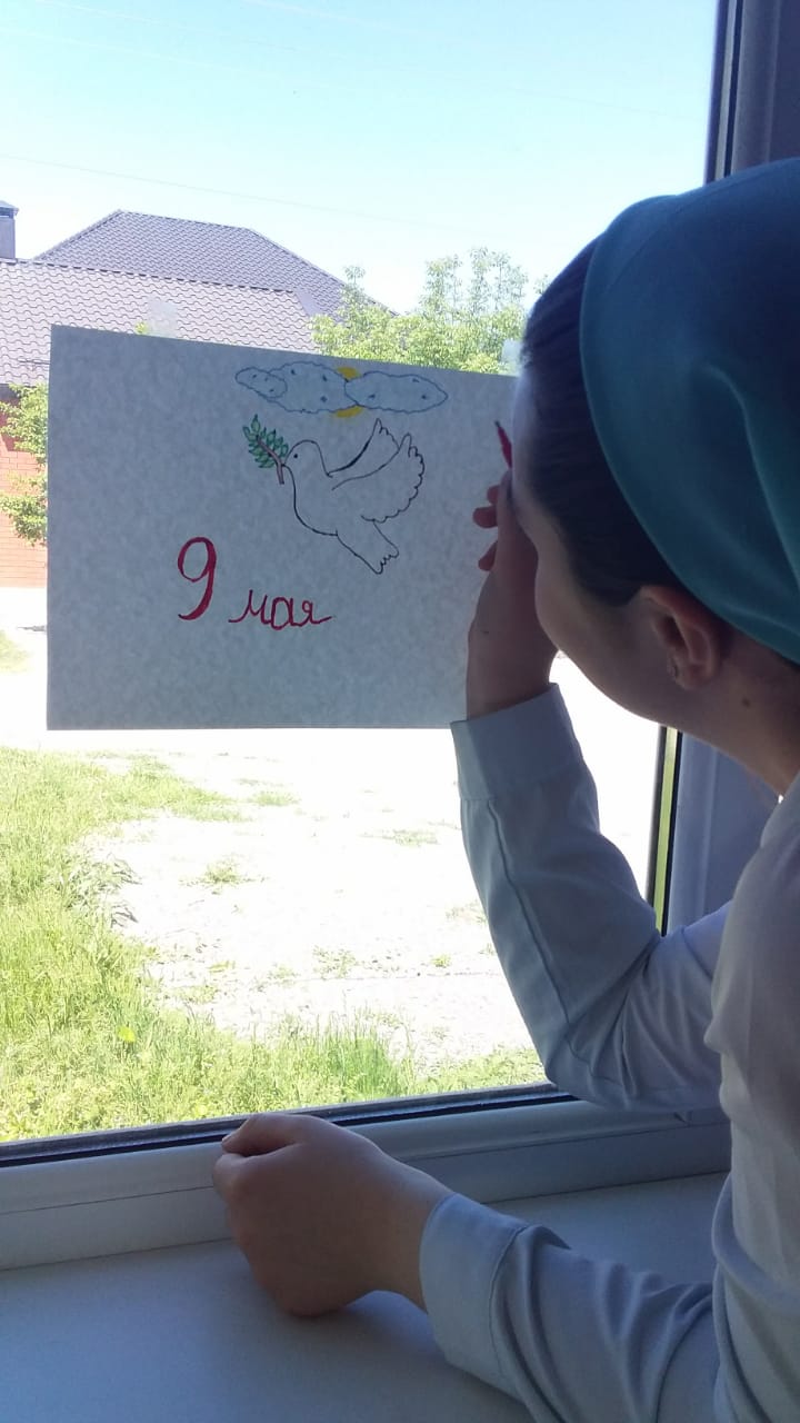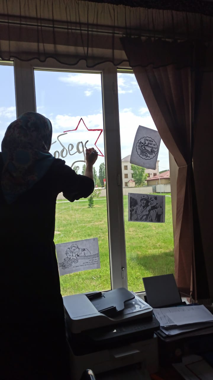 С 03.05.2021г. обучающиеся МБОУ "СОШ №5 им. З.А. Кадырова" приняли эстафету акции ""Окна Победы"