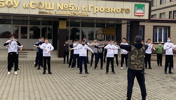 24.0.2022г. в МБОУ "СОШ №5 им.З.А. Кадырова" г.Грозного была проведена акция "Зарядка с чемпионом". Зарядку проводил Умхиев Амирбек Усамович: Мастер спорта; имеет Черный Пояс; Чемпион России; Главный тренер Чеченской Республики.