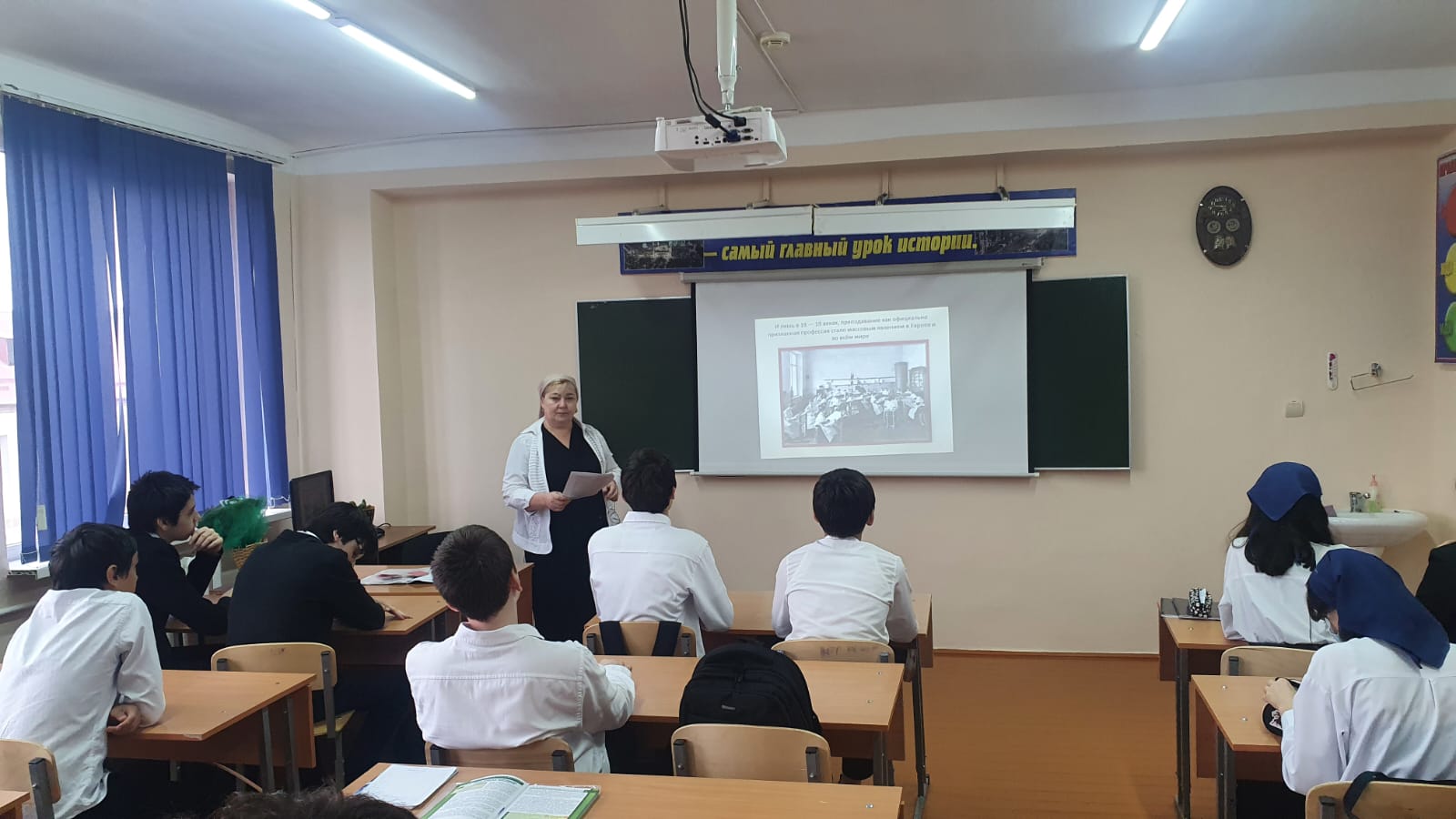03.10.2022г. в МБОУ "СОШ 5 им. З. А. Кадырова"г.Грозного, были проведена торжественная линейка по поднятию флагов РФ и ЧР. После церемонии,был проведен час "Разговоры о важном".