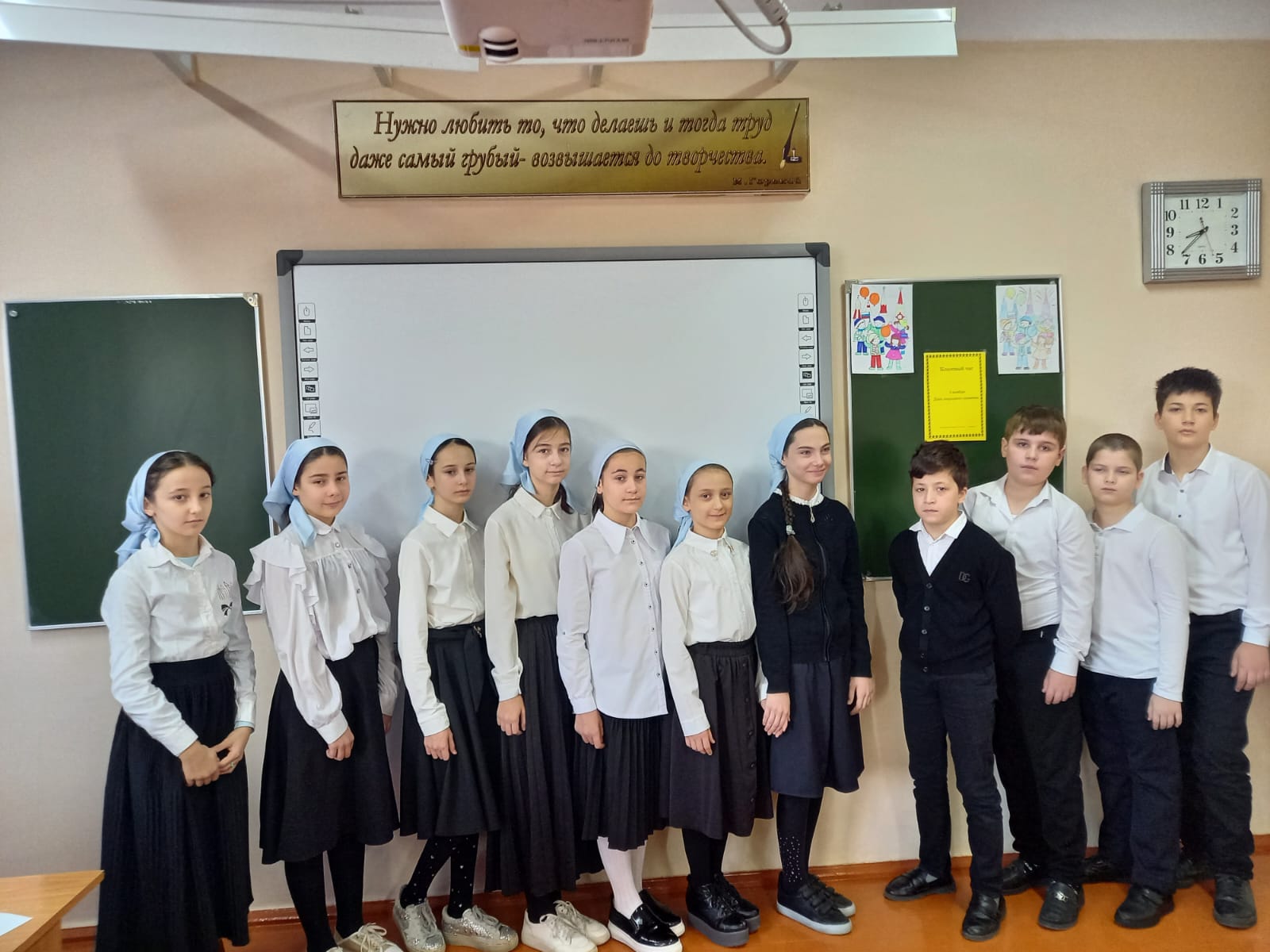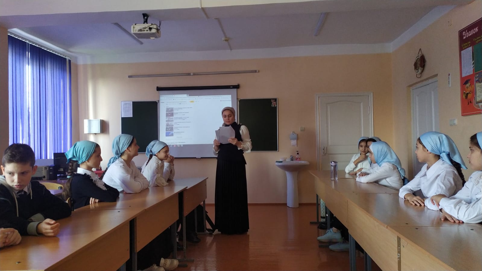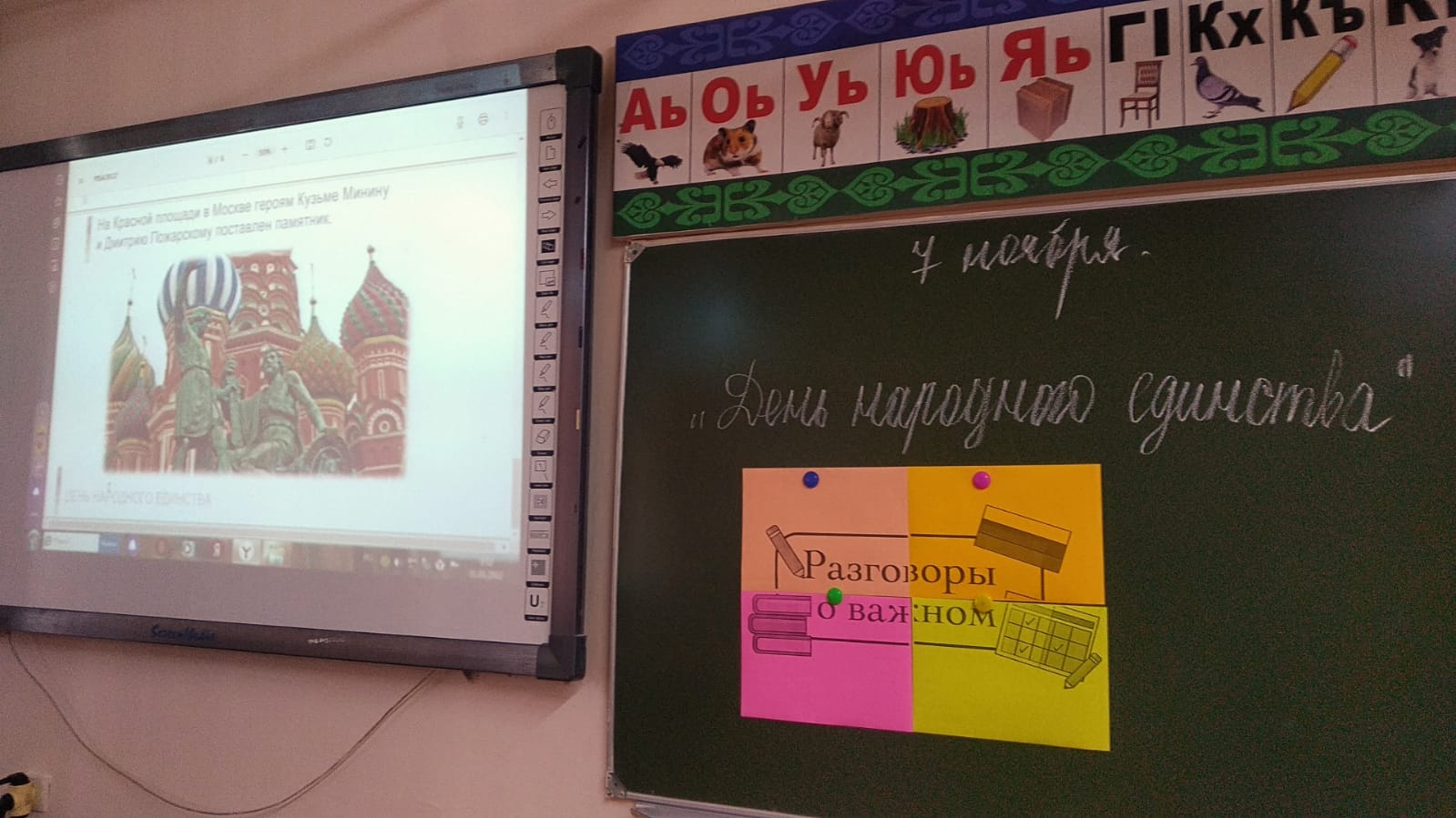 07.11.2022г в МБОУ "СОШ 5 им. З. А. Кадырова", после церемонии поднятия флагов РФ и ЧР, было проведено внеурочное мероприятие "Разговоры и важном"- "День народного единства".
