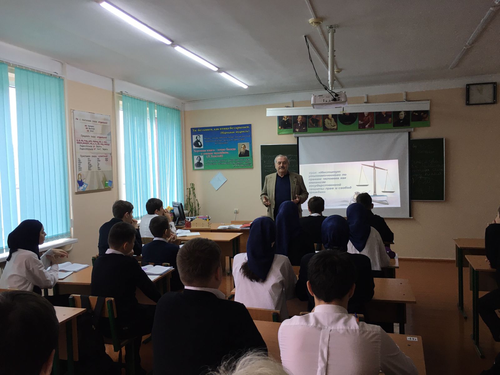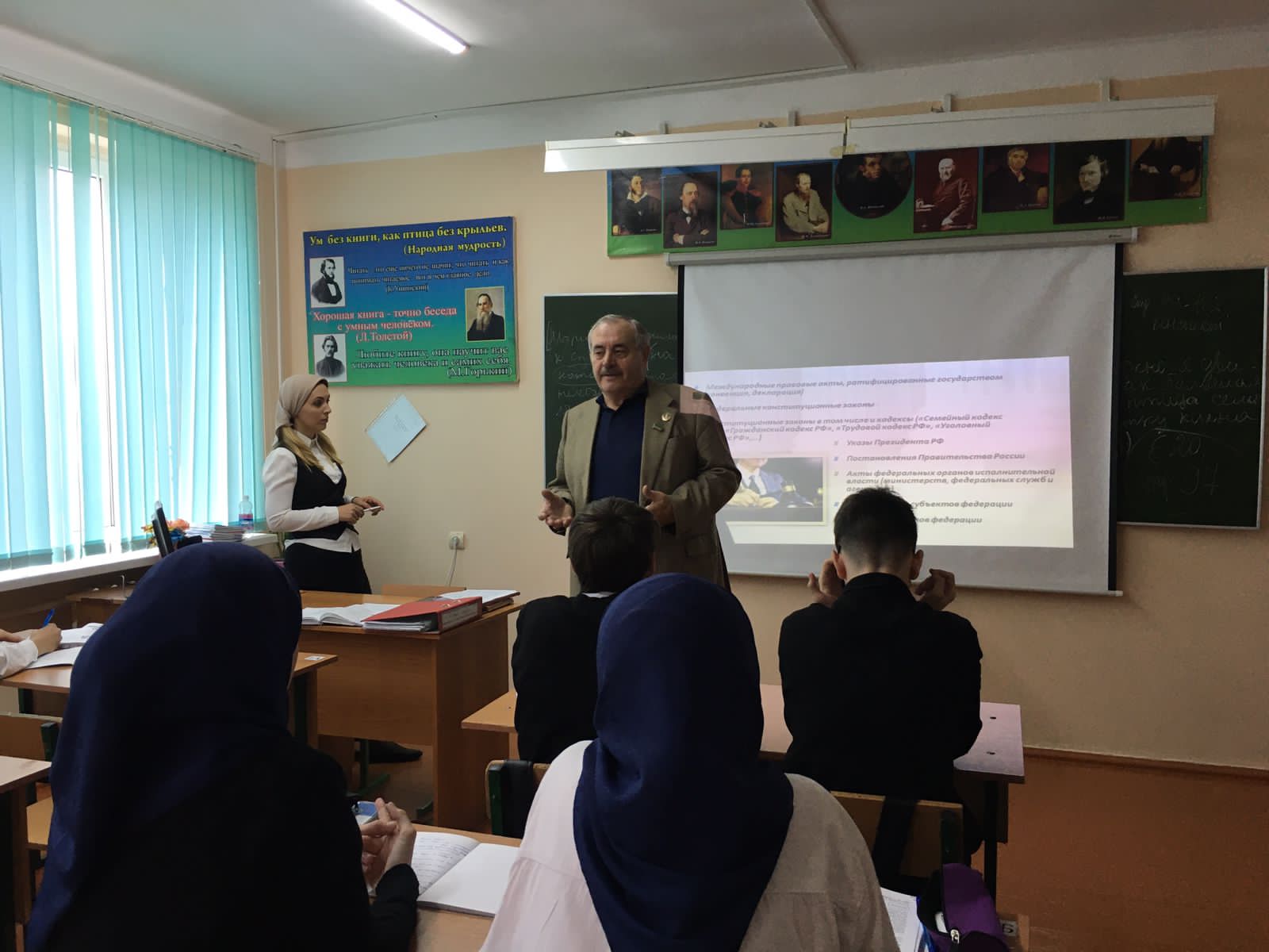 01.12.202229.11.2022г в МБОУ "СОШ 5 им. З. А. Кадырова", был проведен Всероссийский единый урок "Права человека", приуроченный к 25-летию принятия Феделадьнлгл конституонного закона от 26 февраля 1997 года. На открыьый урок-беседу, был приглашен Советник Уполномоченного по правам человека в Чеченской Республике Муцае Мамий Увайсович Тема урока: "Российская Федерация-Россия есть демократическое федеративное правовое государство с республиканской формой правления"