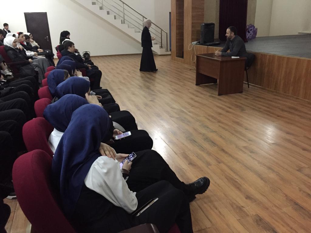19.11.2022г обучвющиеся старших классов МБОУ "СОШ 5 им. З. А. Кадырова" приняли участие в лекции "Какими бывают театры" в Драматическом театре им. М.Ю.Лермонтова. Лекцию проводил Хамзатов Ахмед Мовсурович- режиссер, ведущий актер,заслуженный актер ЧР.