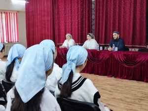 26.01.2023Духовно-нравственное воспитание – одна из сложных и актуальных проблем на сегодняшний день, которая должна решаться всеми, кто работает с детьми или имеет к ним отношение.Советник директора по духовно-нравственному воспитанию МБОУ «СОШ 5 им. З. А. Кадырова» Зухайраев Салахь Абусайдович, провел беседу с ученицами 7-11 классов, на тему "Духовно нравственные ценности".