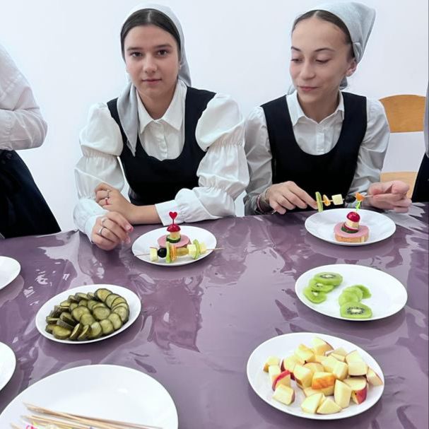 🍏Участники познакомились с таким видом закусок как КАНАПЕ. Канапе- это крошечные бутерброды с различными ингредиентами или свежие овощи и фрукты на шпажке, которые актуальны на всех видах трапезах.Юные кулинары получили множество советов по приготовлению тех или иных блюд, сервировки стола, а также узнали правильное храниние тех или иных продуктов.