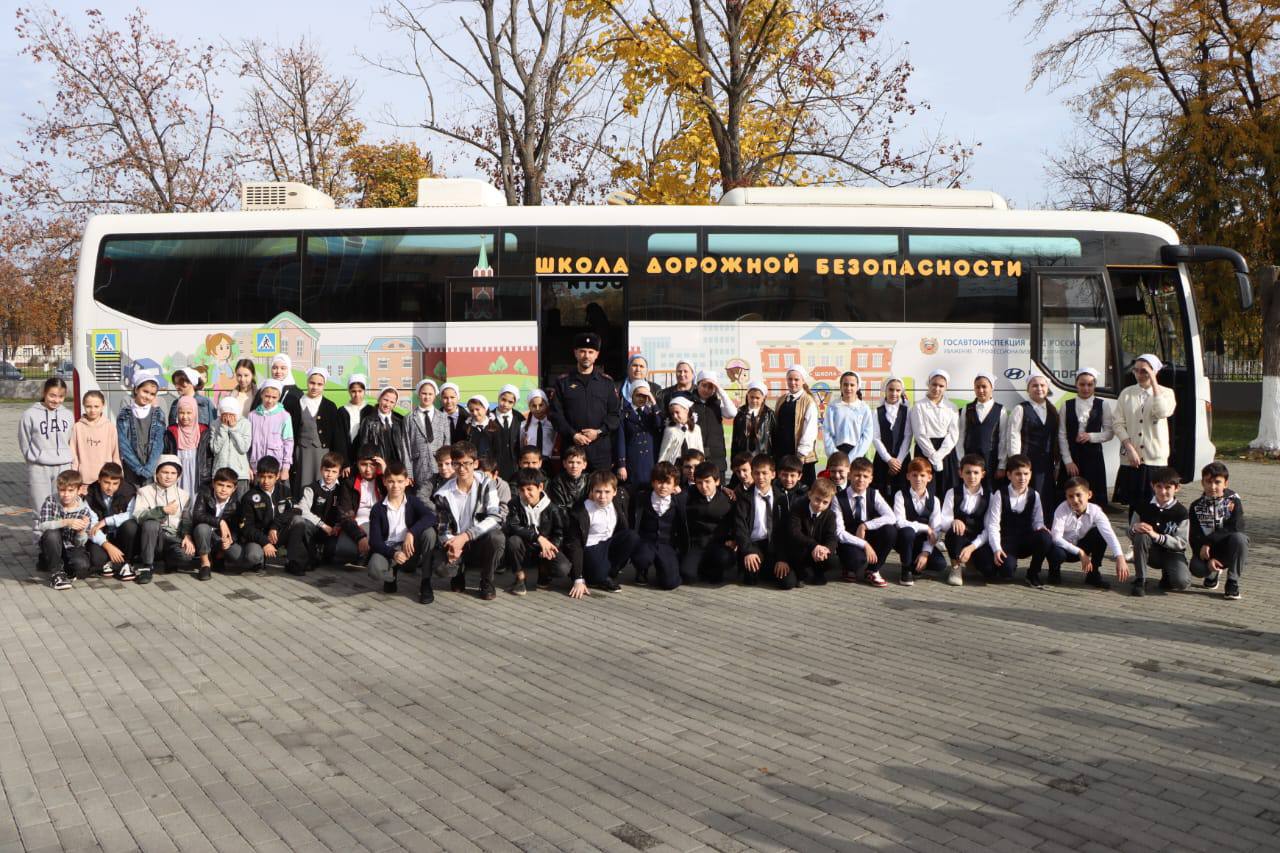ДЛЯ ГРОЗНЕНСКИХ ШКОЛЬНИКОВ ПРОВЕЛИ ПРАКТИЧЕСКИЕ ЗАНЯТИЯ С ИСПОЛЬЗОВАНИЕМ АВТОБУСА-ТРЕНАЖЕРА «ШКОЛА ДОРОЖНОЙ БЕЗОПАСНОСТИ».
