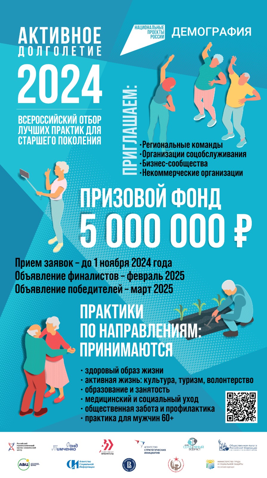 11.10.20241 октября, в Международный день пожилых людей стартовал новый сезон Всероссийского отбора лучших практик для старшего поколения (Активное долголетие – 2024), организованный АНО «Национальные приоритеты» совместно с Министерством труда и социальной защиты России по нацпроекту «Демография».