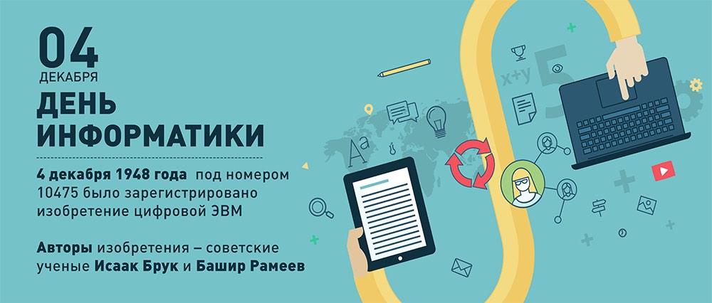 В России дата 4 декабря для празднования Дня информатики выбрана неслучайно. Еще в конце 40-х годов 20 века, заинтересовавшись появившимися публикациями о цифровых вычислительных машинах, член-корреспондент АН СССР по Отделению технических наук И.С. Брук становится активным участником научного семинара, обсуждавшего вопросы автоматизации вычислительной техники.