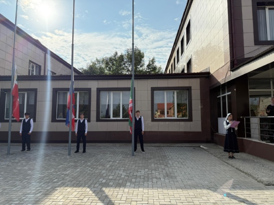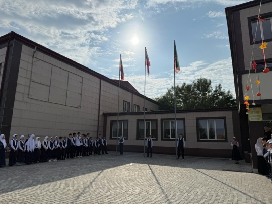 08.09.2025Новая учебная неделя в МБОУ «СОШ №5 им.З.А.Кадырова» г.Грозного началась с торжественной церемонии поднятия флагов Российской Федерации и Чеченской Республики под исполнение гимнов.Желаем всем успешной недели!