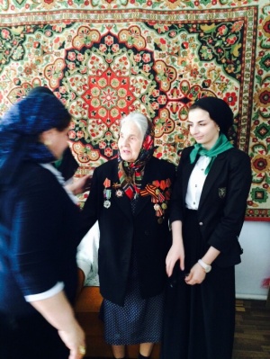 06.05.2015Отряд «Юные Кадыровцы» принимает участие во всех мероприятиях по духовно-нравственному и гражданско - патриотическому направлениях. Особое внимание было уделено ветеранам ВОВ нуждающимся в помощи. Ребята оказывали посильную помощь в уборке приусадебных участков ветерана. Часто, посещая её на дому, собрали информацию о годах войны, которую ветеран прошел от начала и до победного конца, пронеся гордо свое имя и прославляя свой чеченский народ. Ребята из отряда выполняли различные поручения и просьбы ветерана.