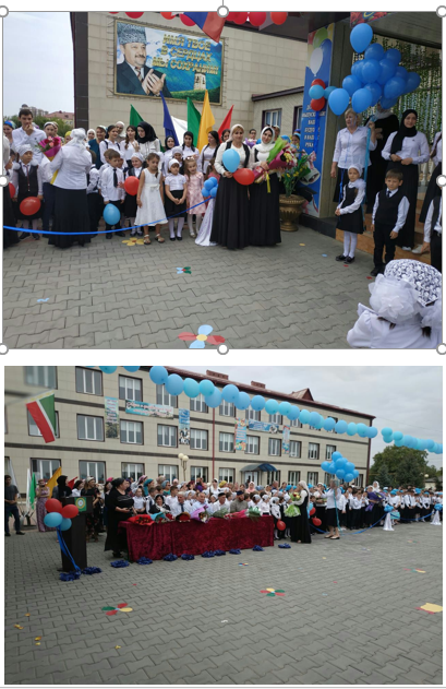 Торжественная линейка была открыта Гимном РФ и ЧР. С поздравительной речью к родителям и учащимся выступила директор школы Сайдулаева Я.Р. Она поздравила всех с началом учебного года, с «Днем знаний».