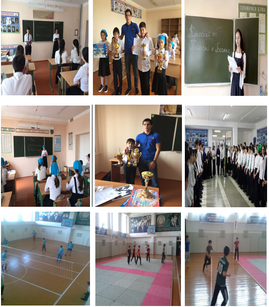 В 5а классе был подготовлен и проведен открытый классный час «Урок памяти и мужества» (Дети - герои). На открытый классный час был приглашен выпускник нашей школы двукратный чемпион СКФО по каратэ, чемпион Республики по каратэ, чемпион Азии, четырехкратный чемпион кубка России по каратэ… Газиев Магомед Сайд – Эминович.